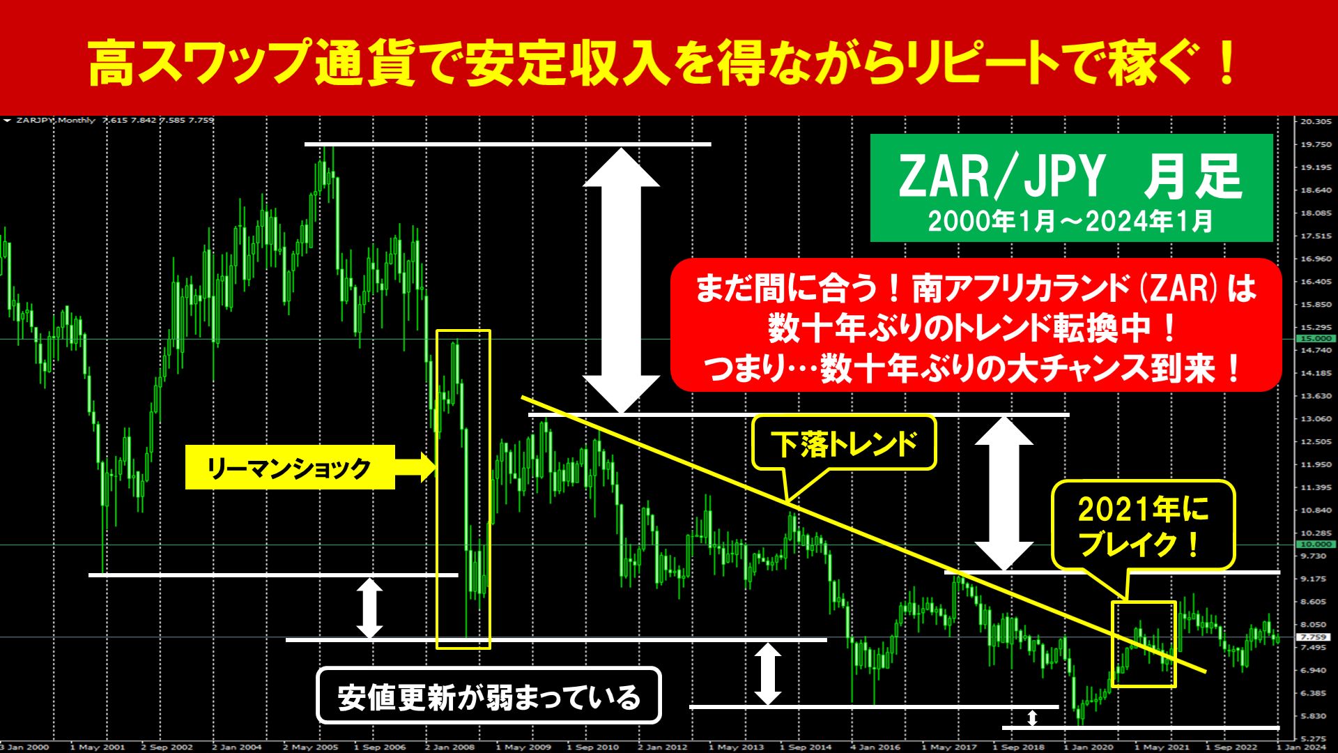 日々スワップを獲得しながらリピートでも稼ぎます。スワップがメインの戦略であるため取引回数は控え目ですが、その分リスクも低めです。