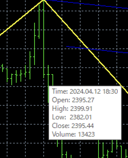 そして、次の足で、High 2399.91 まで反発しているから6.16ドル反発していることがわかる