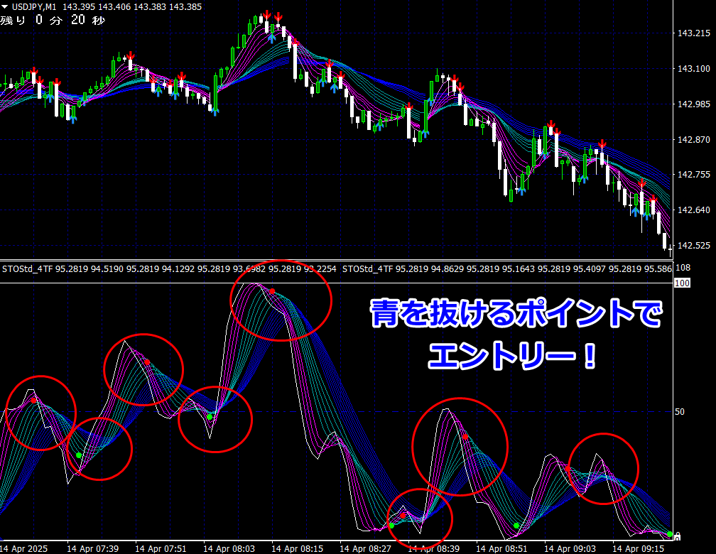 従いまして、上昇にしろ、下落にしろ、エントリーのねらい目は