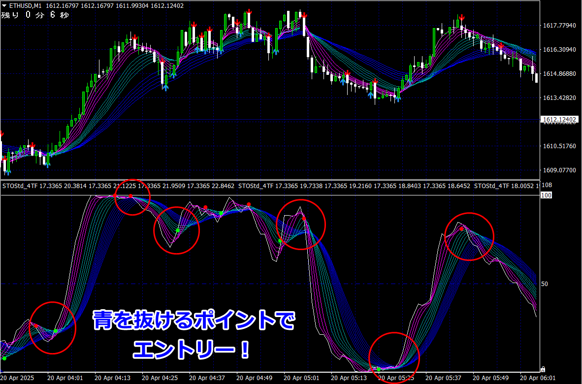 従いまして、上昇にしろ、下落にしろ、エントリーのねらい目は