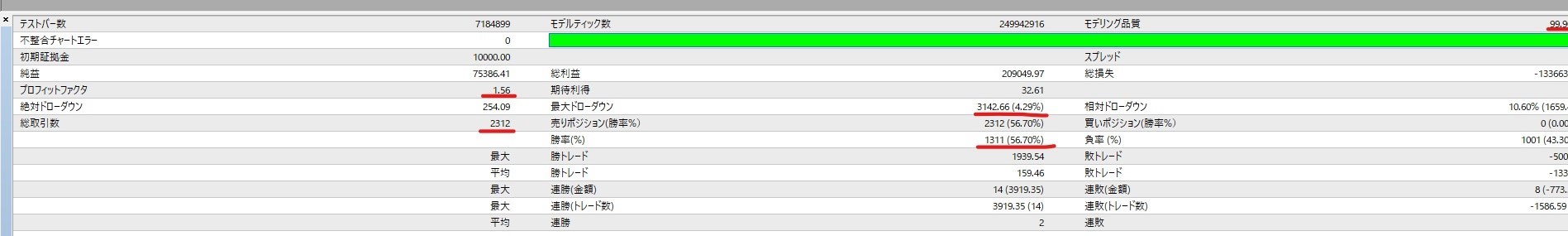 EAの優位性を判断するためには、①PF(プロフィットファクター) ②最大ドローダウン ③勝率 ④トレード頻度 の4つの要素を十分に見る必要があります。