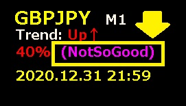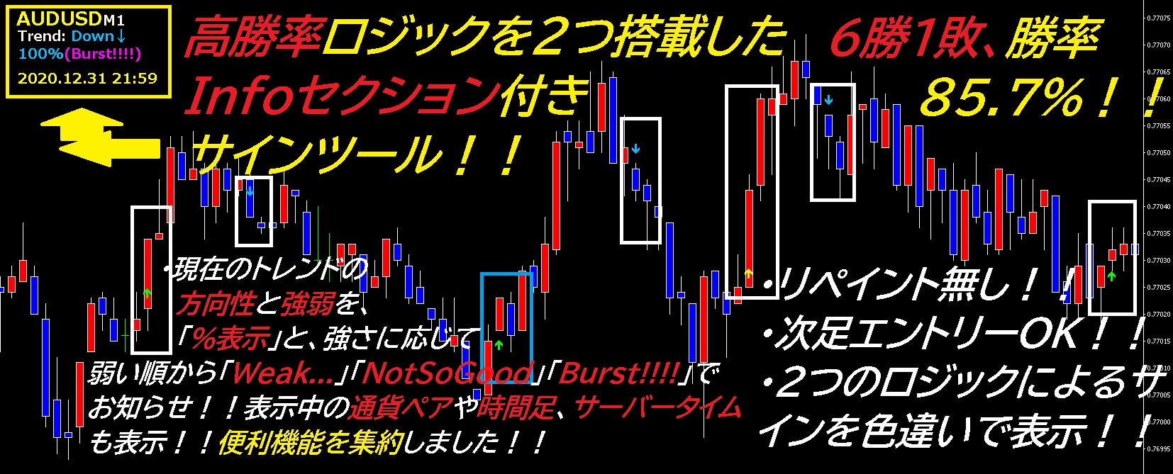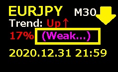 トレンドの強弱を「%表示」、強さの度合いに応じて「Weak...」「NotSoGood」「Burst!!!!」でお知らせ!!