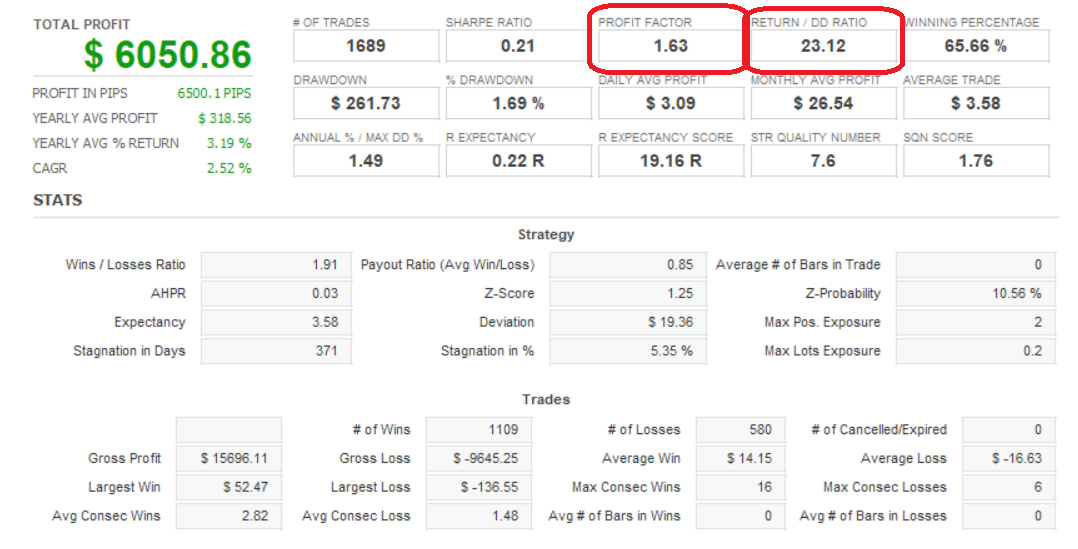 ・Risk-Return Ratio: Total Profit and Loss during the period ÷ Maximum Drawdown