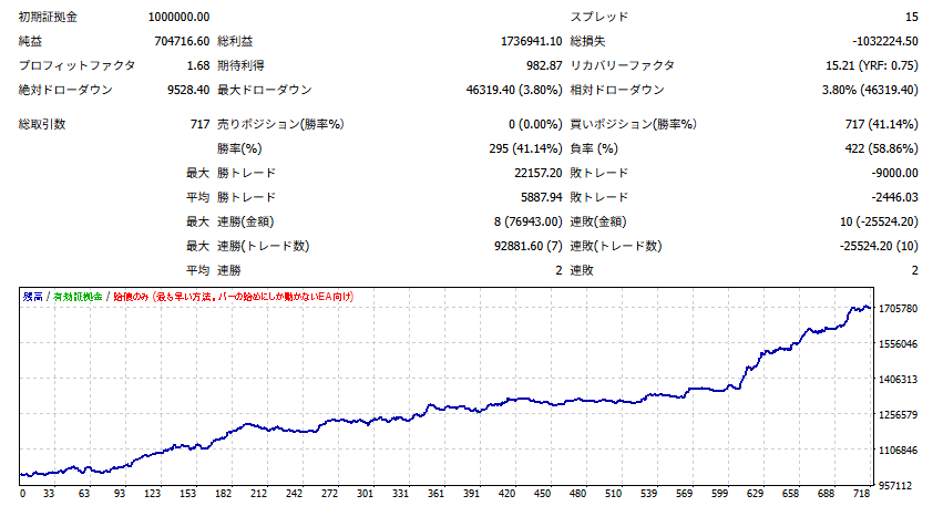 【EAの説明:ロングエントリーのみで円高でも、バックテストは右肩上がり、プラススワップも享受しながら、利益を狙うEA!】