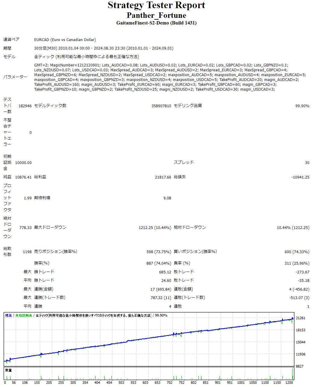 本EAは、AUD/CAD、AUD/USD、EUR/CAD、GBP/CAD、GBP/NZD、NZD/USD、USD/CADの7通貨ペアに対応し、ポートフォリオ運用を実現します。