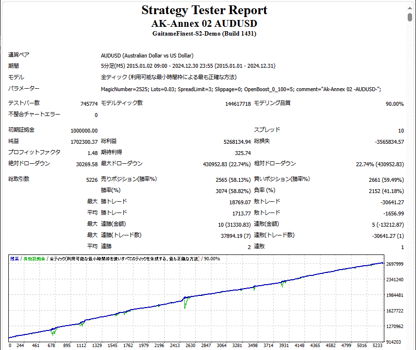 10年「Lots=0.03」([規定値]) 証拠金 1,000,000 ⇒ 円