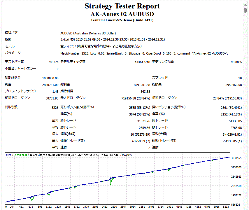 | comment | Ak-Annex -EURUSD- | 変更可能です。規定値の「Ak-Annex 02 -AUDUSD-」を削除して自由に入力していただくことができます。 |