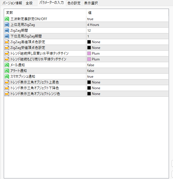 ・下位足用ZigZag期間 デフォルトは1 4.0にて追加