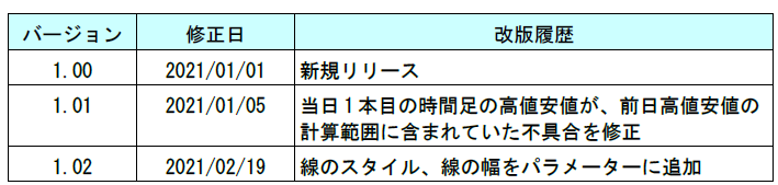 1時間足以下のチャートに、前日の高値ライン、安値ラインを自動描画するインディケータです。2.パラメータ説明