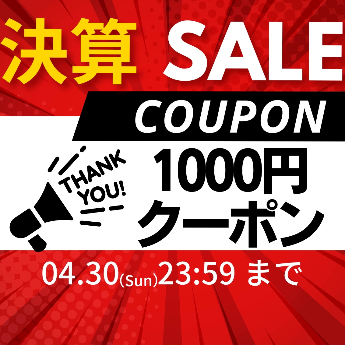 決算セールクーポン¥2000お得なクーポンです! 年に1度の決算セール!