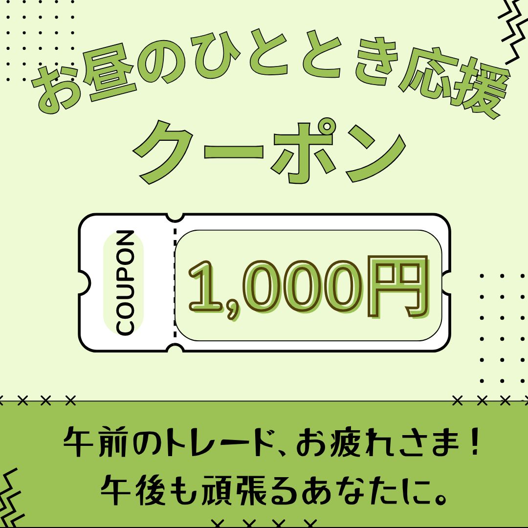 午前の勝負が終わったら、午後に向けてリセット&チャージ! あなたの挑戦に、私たちからのささやかな応援です。 昼の相場も、きっとあなたの味方です。