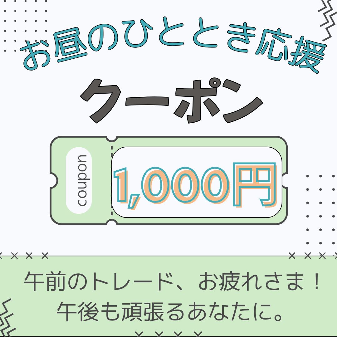 午前の勝負が終わったら、午後に向けてリセット&チャージ! あなたの挑戦に、私たちからのささやかな応援です。 昼の相場も、きっとあなたの味方です。