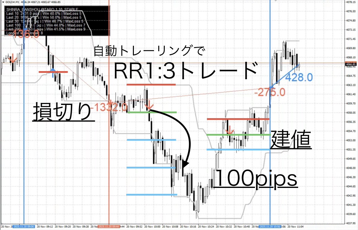 エントリー後に SLを1〜2本前の高値安値に移動しただけ。
