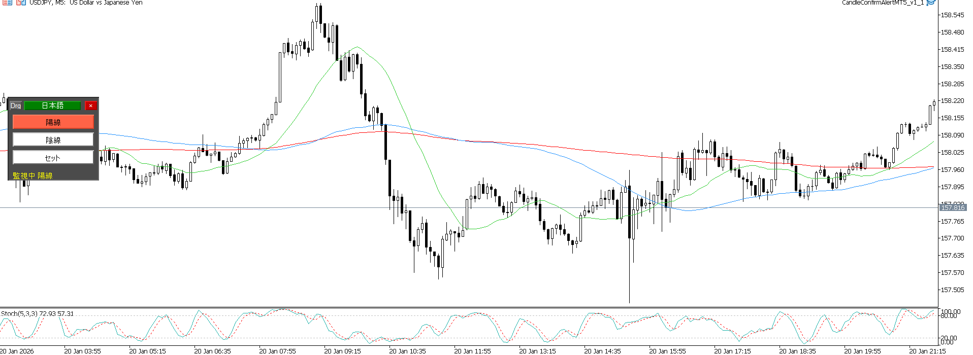 It works on any timeframe, so if you don’t trust the 5-minute chart, you can set it to 15-minute, or prepare two charts and set each one. In any case, wait for the alert and then think.