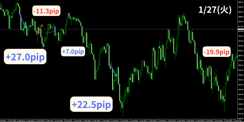 [January 27] 30-second Gold No-Discretion Scalping + [Second Round 30-second Gold Automatic FX] Trade Results!