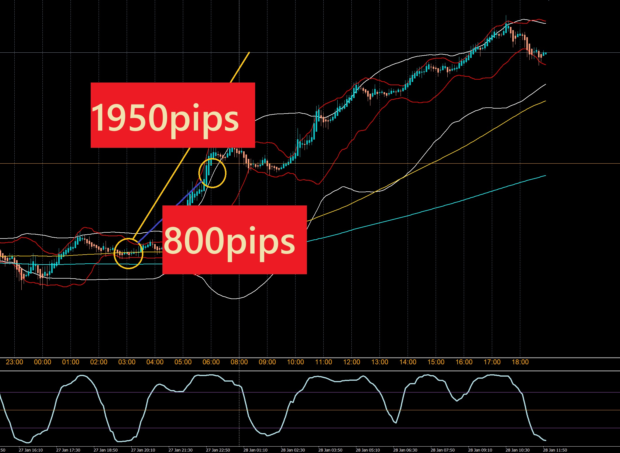 +800 pips on the 5-minute chart with 0.01 lots, ¥13,211,