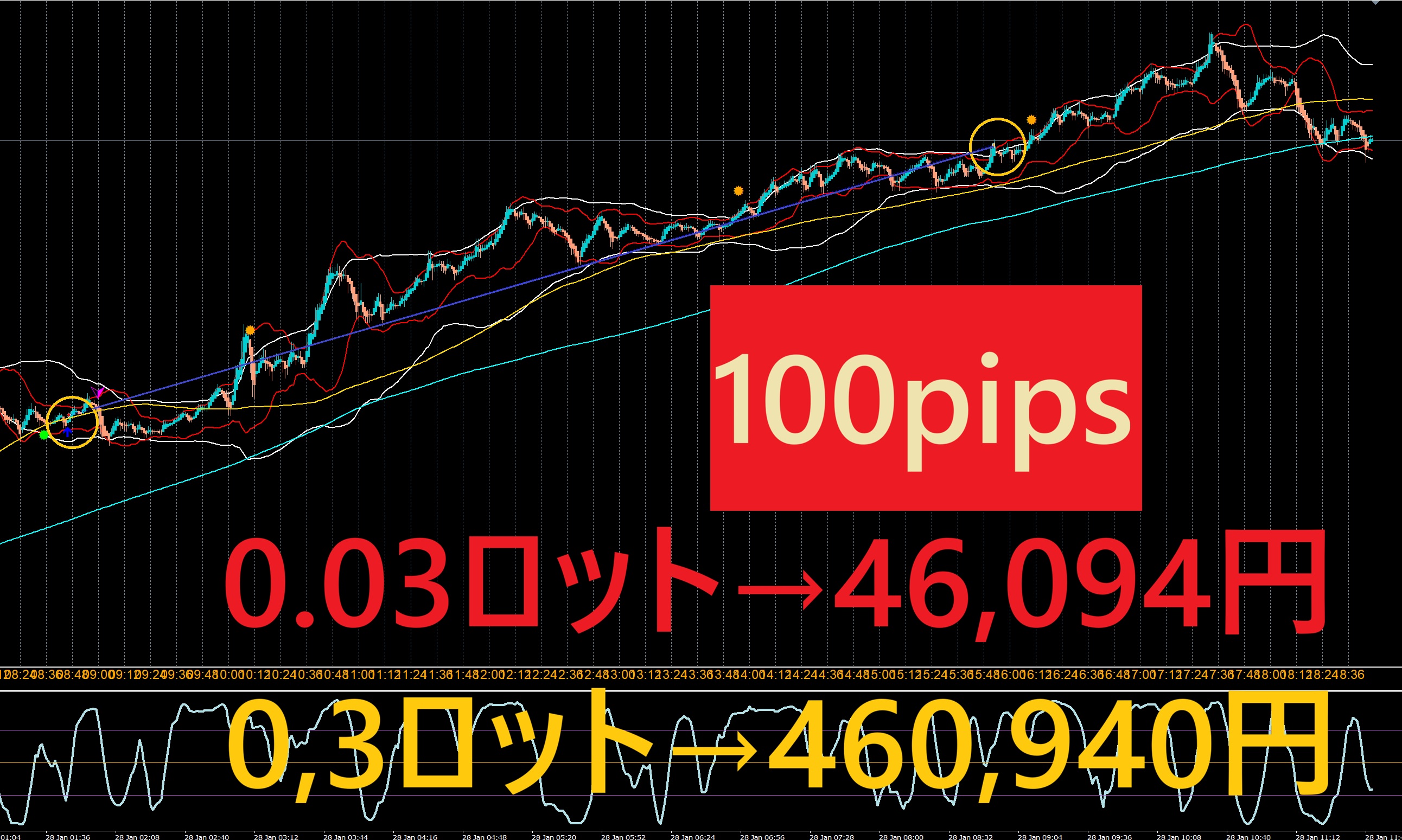+100 pips on the 1-minute chart with 0.03 lots, ¥46,094,