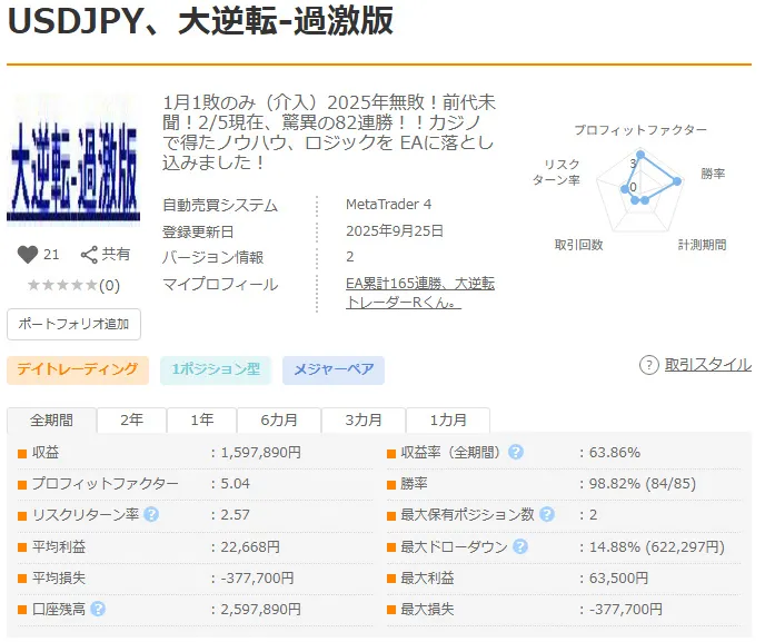Only 1 loss on 1/1 (intervention) Unbeaten in February! An EA with excellent sales ranking #1!