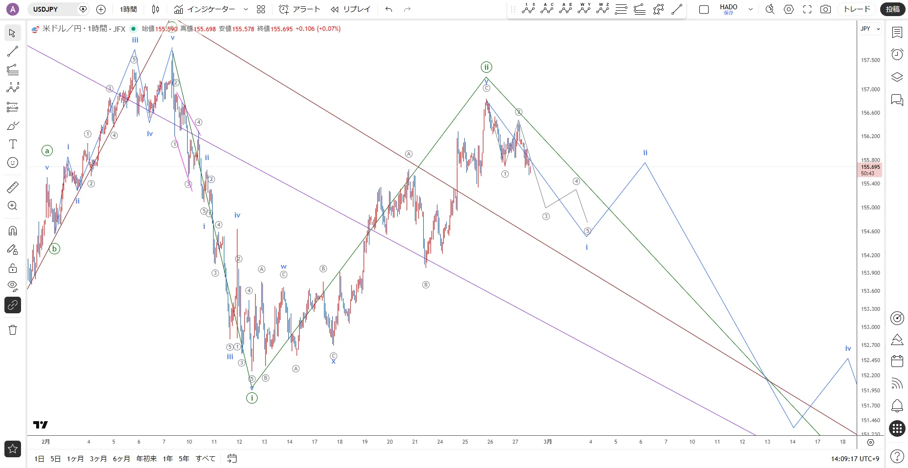【USD/JPY】 The downward momentum remains hard to develop / Event Elliott Wave Analysis for Friday, February 27