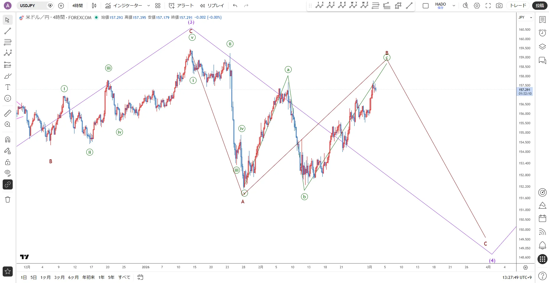 【Dollar/Yen】Continuing rise / March 3 (Tue) Event Elliott wave analysis