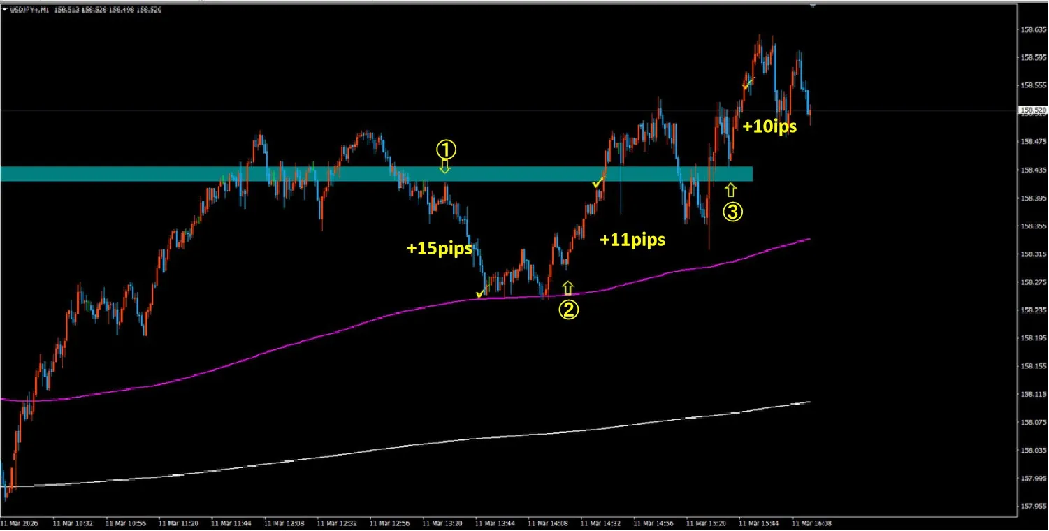 Verification on the USD/JPY 1-minute chart.