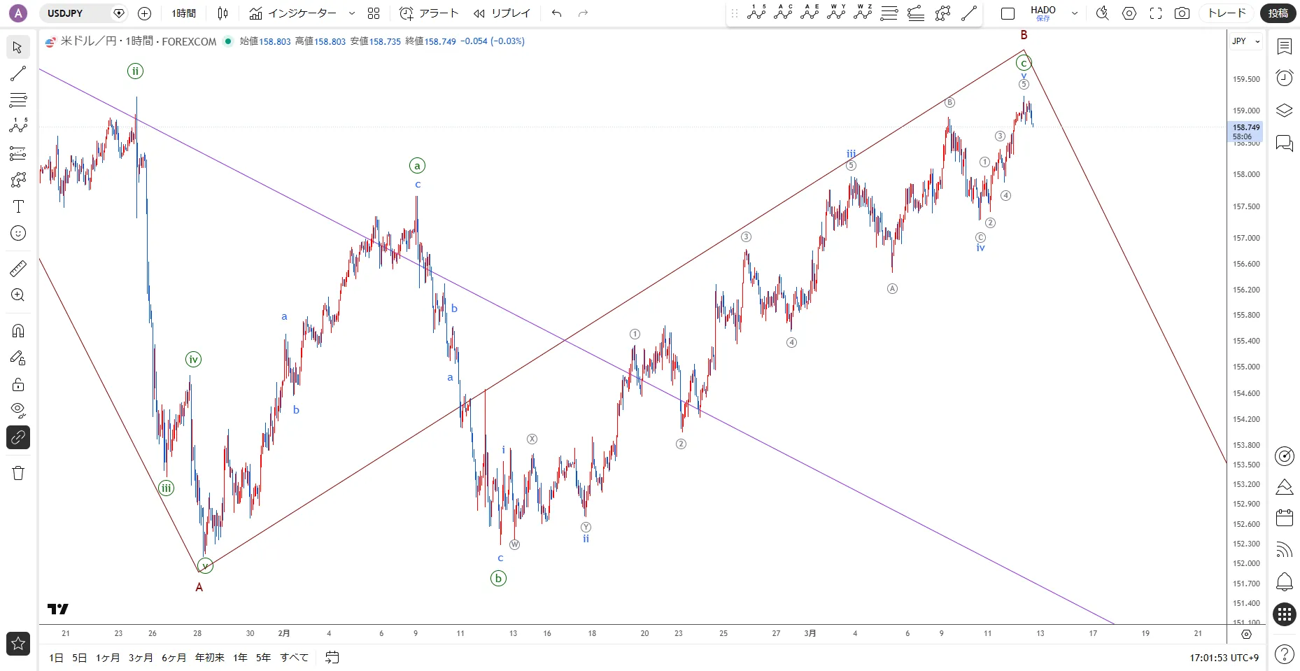 【Dollar-Yen】Main scenario turns downward / Event Elliott Wave analysis for March 12 (Thu)