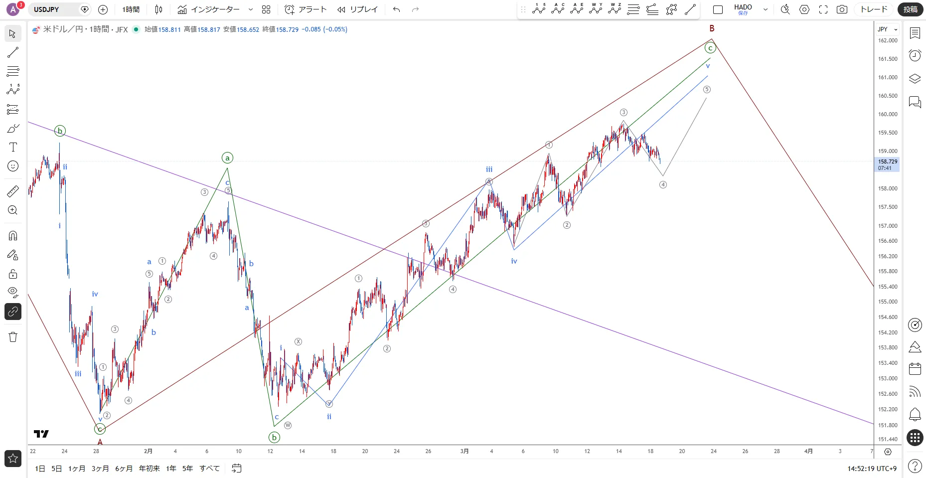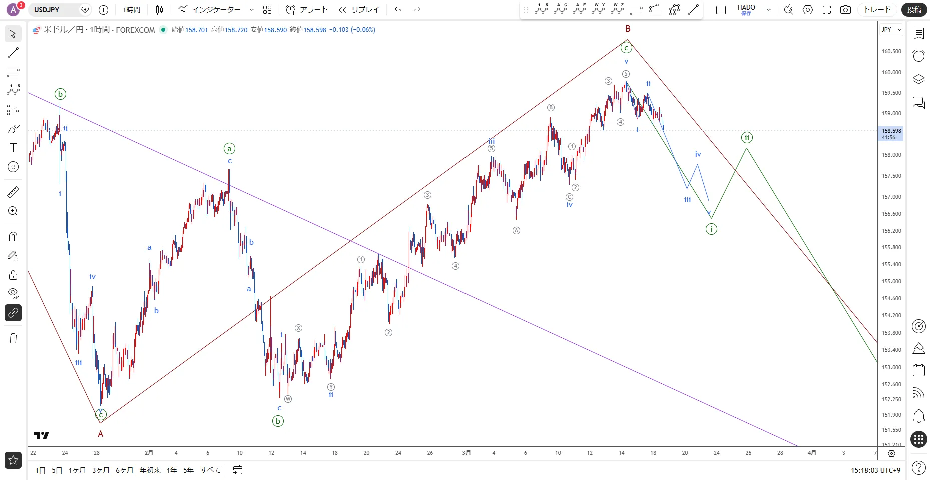 【Dollar/Yen】 Downward as per scenario / Event Elliott Wave analysis for March 18 (Wednesday)