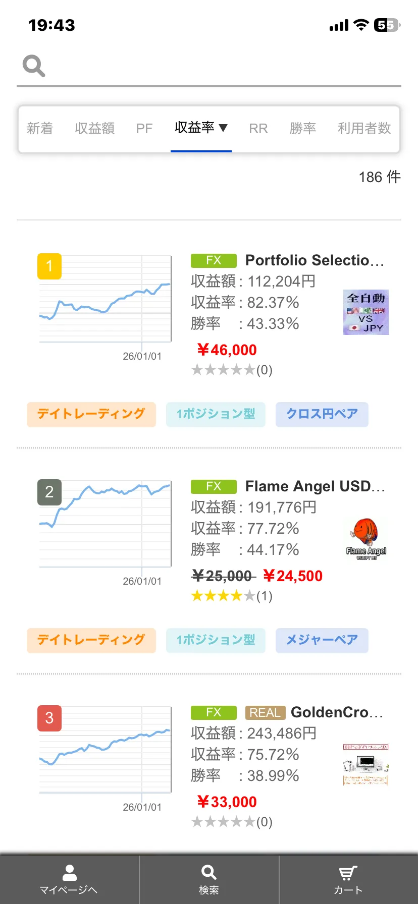 1ポジ型、直近1年、取引回数200〜 収益率1位獲得 Translates to: One-position type, last year, number of trades 200 or more, achieving the highest profitability