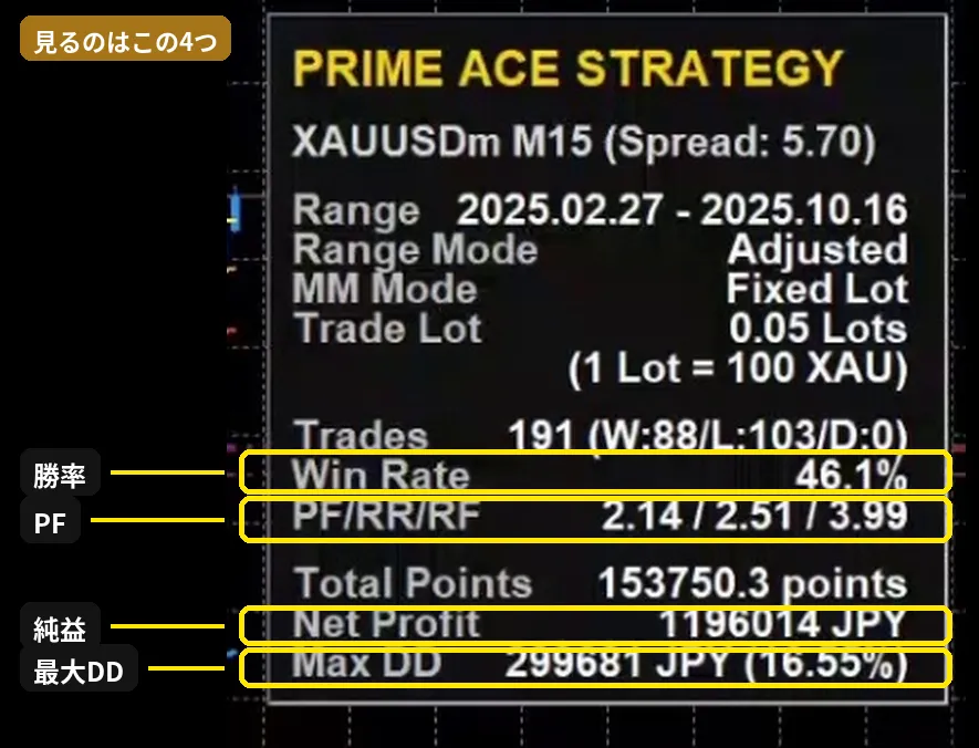 you watch how win rate, PF, net profit, and maximum drawdown change.