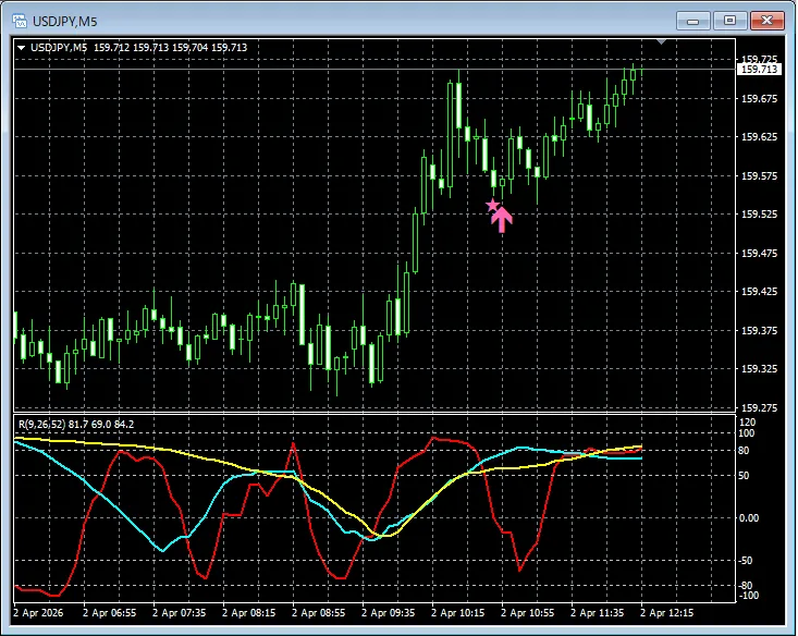 【Master RCI to Win!!】Pullback Buy Near-term USD/JPY 5-minute chart sign of mBDSR