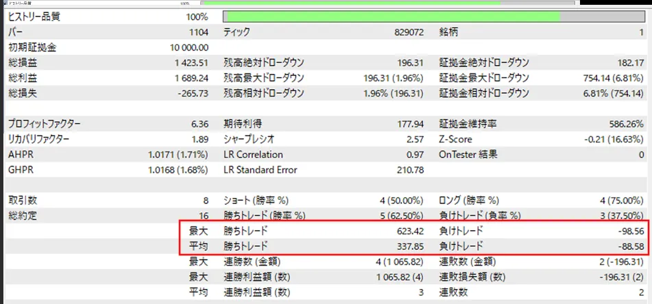 With this, EMA becomes strong at trend determination, so even with a risky, peak-prone design that goes in the opposite direction and would normally cause a quick loss, noise is minimized and outcomes are decisively determined