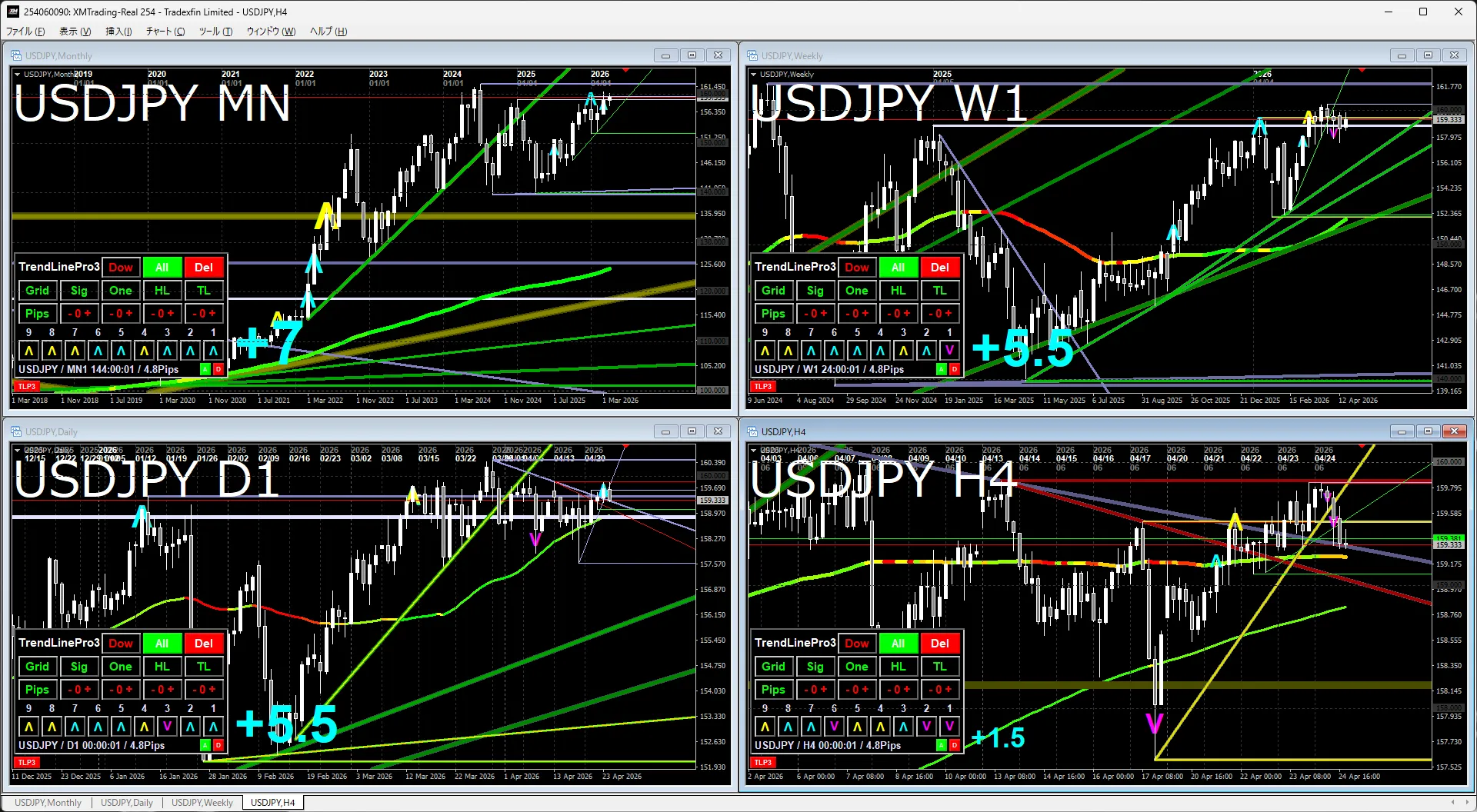 2026/4/25 Dollar/Yen, Gold, SP500, and Nikkei 225 environment