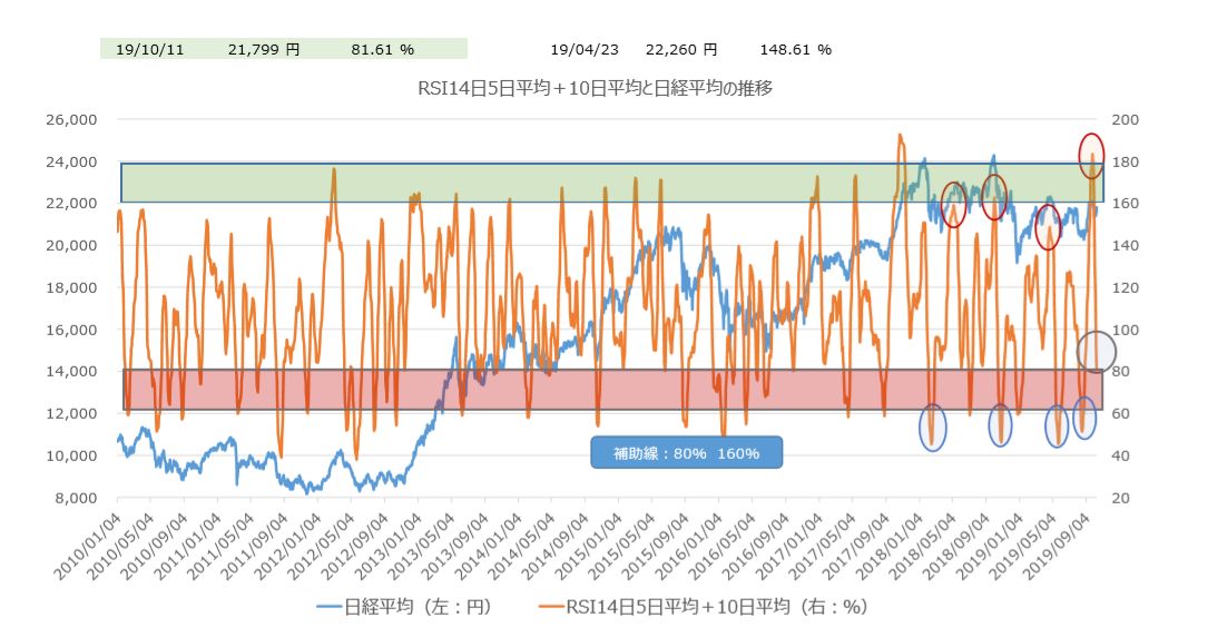Meanwhile, in Japan, the Nikkei Average RSI total was still only 130.96% as of last Friday, making a sizable gap of over 50 percentage points with the Dow—a quite rare situation.