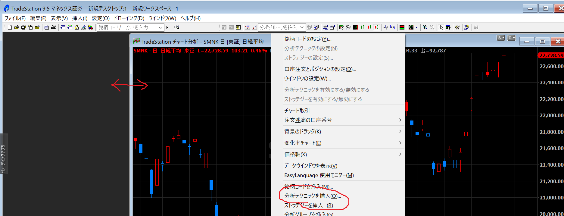 チャート上で右クリックをして【分析テクニックを挿入】をクリック