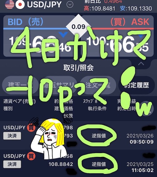 4日間くらいかけて粘った結果の損切りは悔しいですね〜。