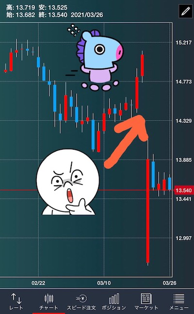 3月22日の朝、トルコリラ円のチャートを開くと暴落していました。