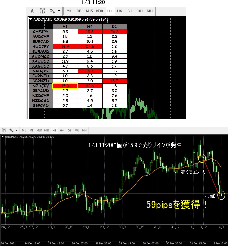 【Performance on January 4, 2022】AUD/JPY and NZD/JPY gained 127 pips in one day! "Tendon Sign Indicator" Easy entry with market tops and bottoms notified to your smartphone!