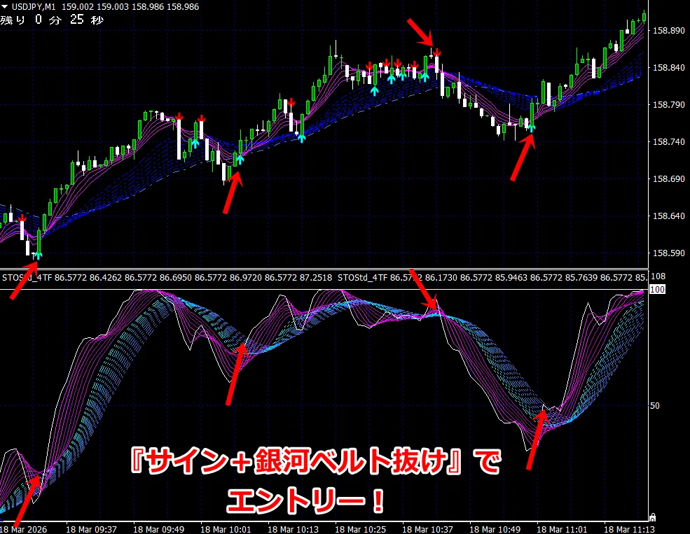 ・ If the pink band is above the Galaxy Belt, it indicates an uptrend,