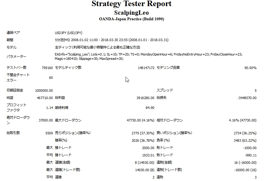 スキャルピング系EAを運用する場合は、できるだけ約定力が高く、スプレッドの狭いFX会社を利用されることを強くお奨めします!