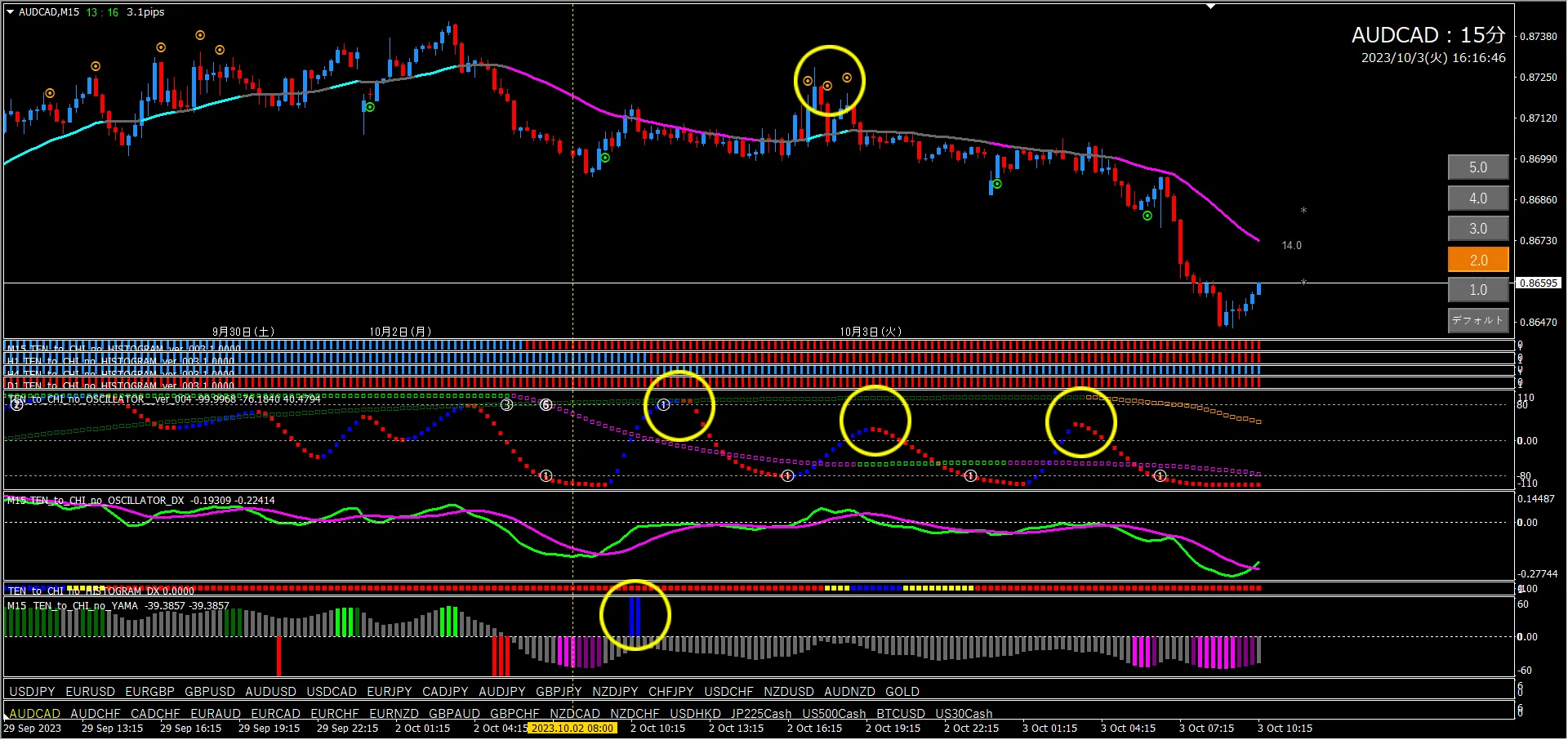 ※Regarding the specialized terms used in this blog, please refer to the following “Names of parts of Heaven and Earth Indicator” and “Heaven and Earth Oscillator patterns.” If you have other questions, please refer to the Heaven and Earth Indicator sales page, and you should be able to understand most things. If you are already a user, reading the instruction manual should be enough. Already for users, reading the manual should be no problem, right.