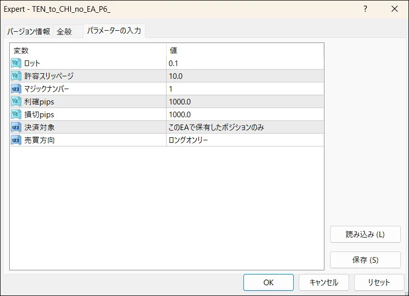 If a clear trend is confirmed on the 4-hour, you may also use the newly added “EA Pattern ⑥” for automated trading by changing the Tento-ji line colors today. This is a way to capture from end to end of the trend. The parameters for EA Pattern ⑥ are as follows for reference.