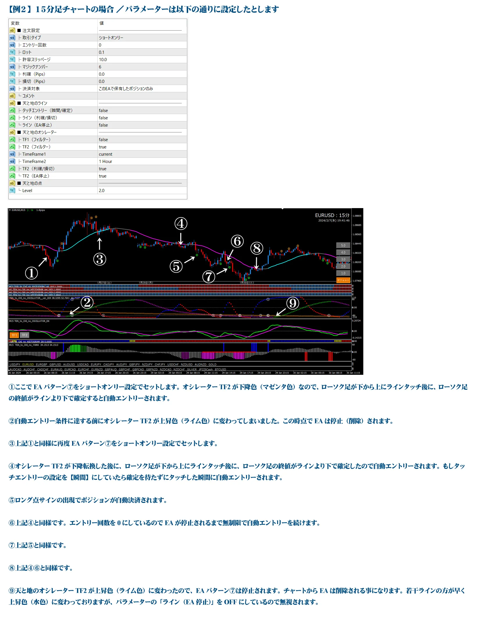 It is a semi-discretionary EA that fully reproduces Trade Pattern ③ Reversal version.It is particularly effective in trends like the following market conditions.
