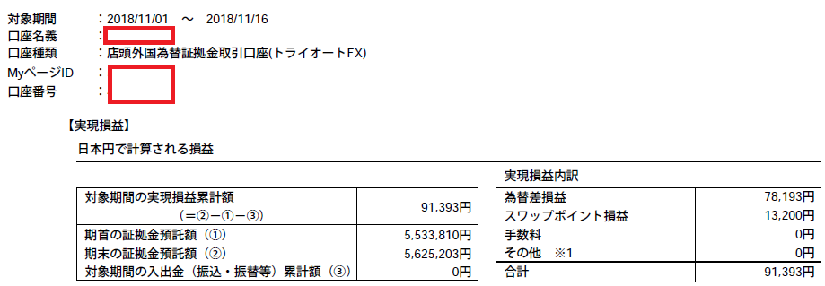 【トライオートFX】2018年11月は現在91393円の稼ぎがあります
