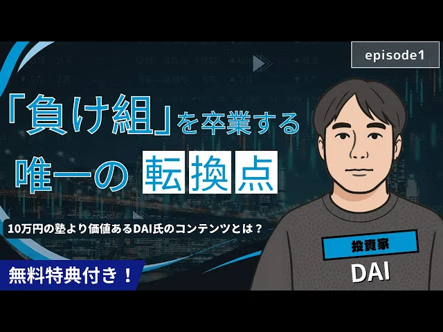 No matter how many study materials you buy, you never end up becoming able to win... To you who have wandered into that tunnel with no exit. This time, we welcomed the author DAI of the overwhelmingly supported content FX原理原則, and the active trader z1pp0, who overcame ポジポジ病 through that teaching and reached a turning point in life. Why were the materials up to now not good enough? How can you gain the conviction that you can win? This time, we get to the heart of it.