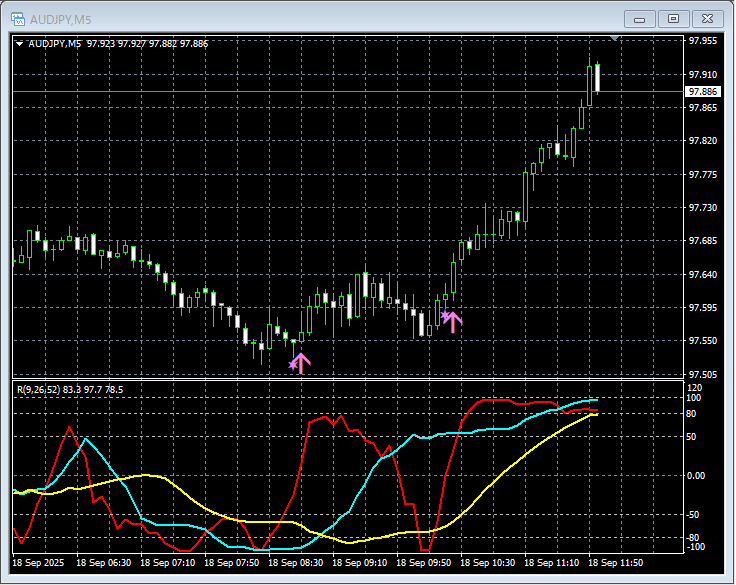 【RCIを極めて勝つ!!】R1R2S2のサイン 豪ドル円 5分足