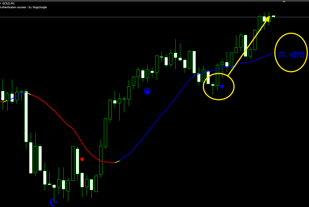 チャート上に「文字+色付きライン」で表示するので、初心者の方でも直感的に使えます。