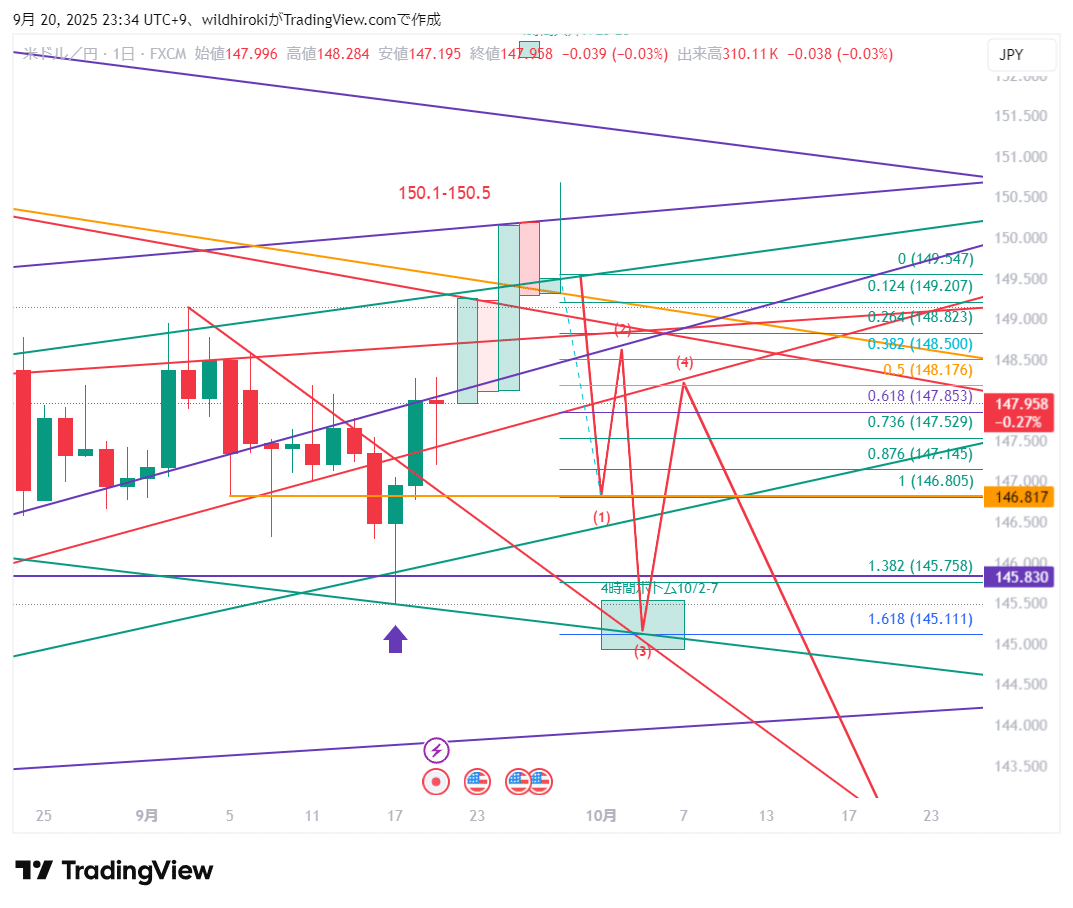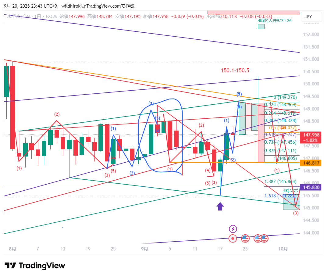 金曜日148くらいまでの上昇から下落 145を目指す展開