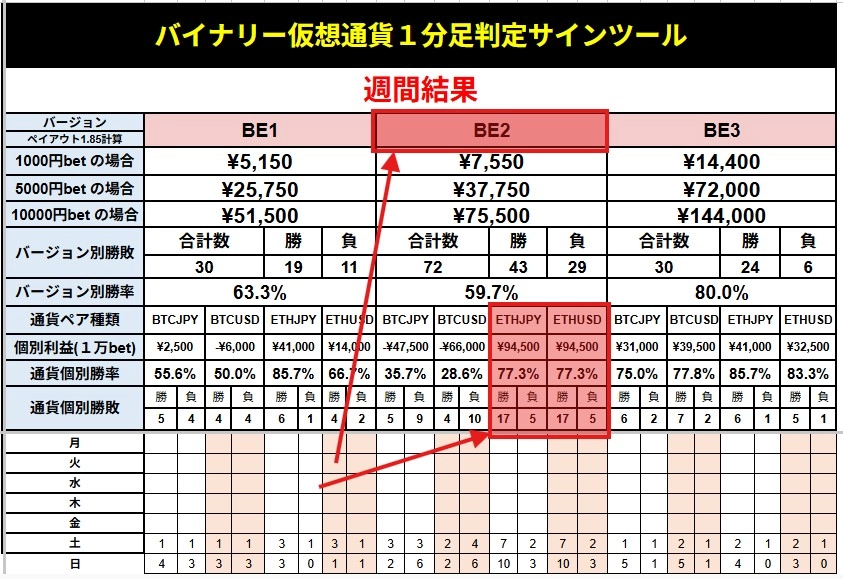 以下、5/14までの勝率や利益率、曜日別の勝率を載せております。