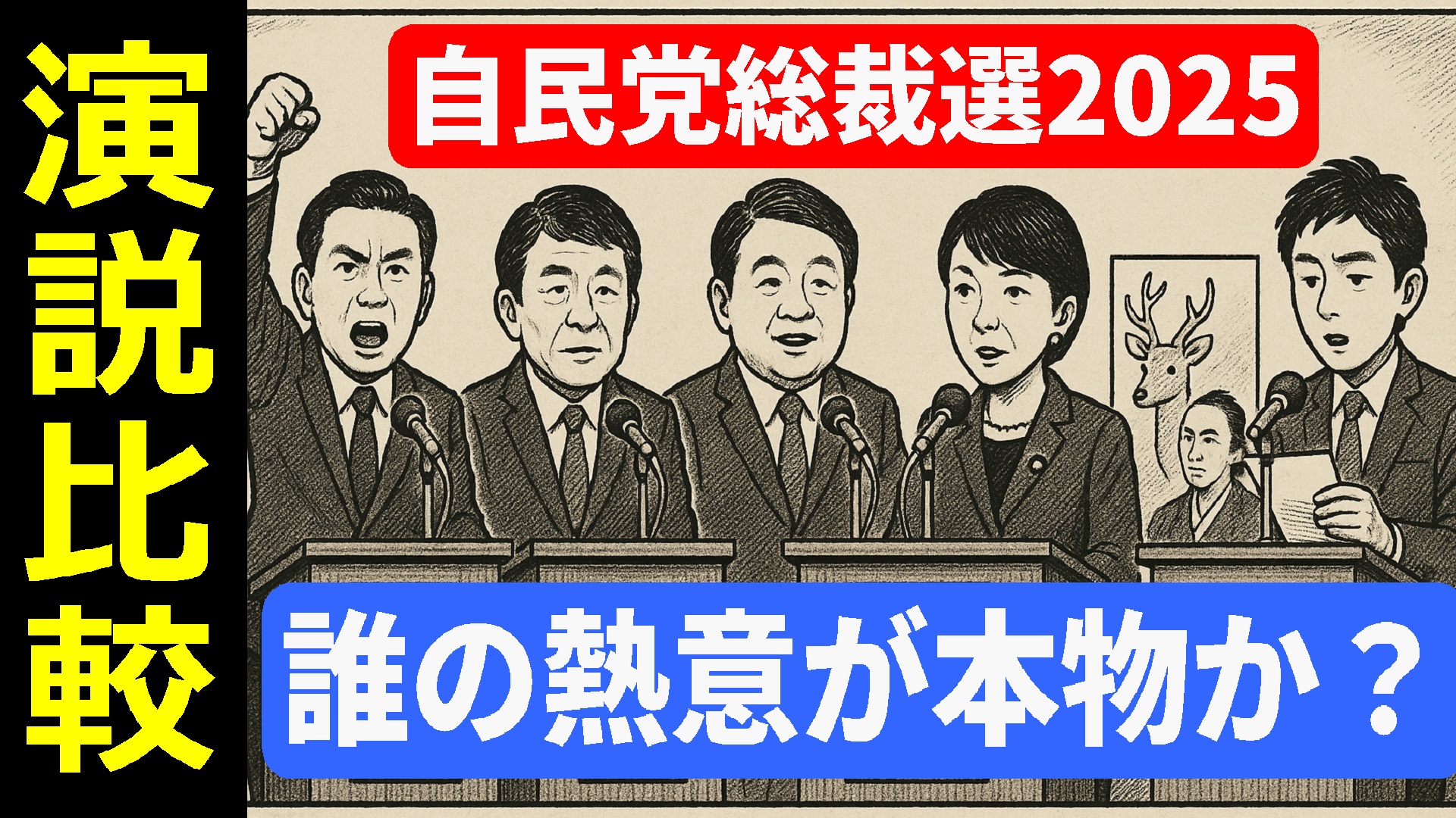 🤣自民党総裁選2025:5人の演説比較と主張の焦点!誰の熱意が本物か?