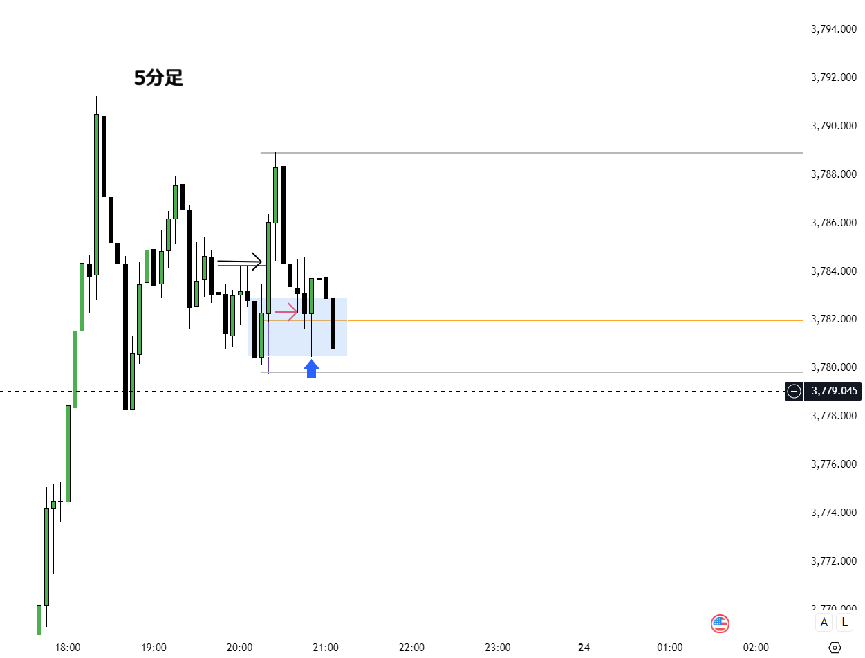 ちょうど午後9時前に超短期トレードのパターン(Smart Money Sniper Prime)がありましたので、エントリーしました。